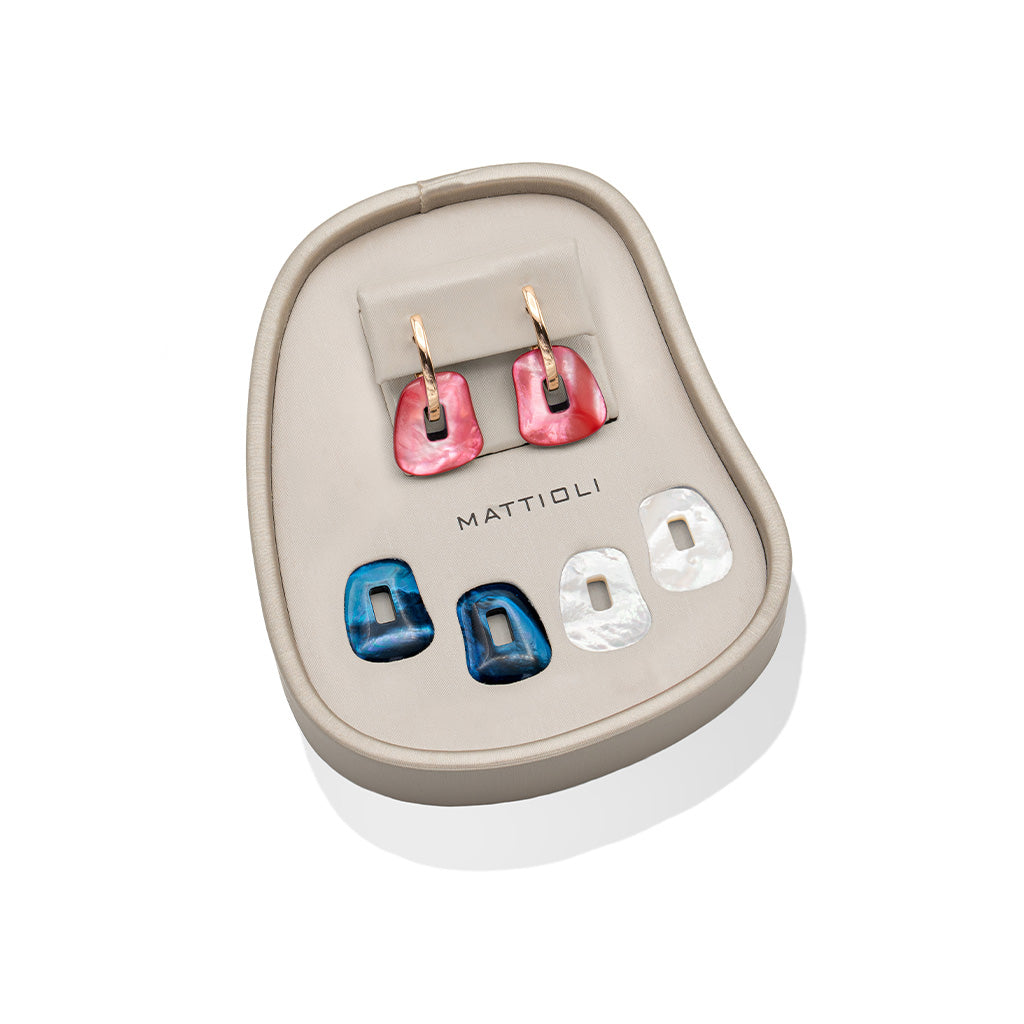 Joy, colour, whimsy define Puzzle, Mattioli’s iconic collection. The interchangeable mother of pearls allow you to create new look every day. Choose your colours and create your jewel.