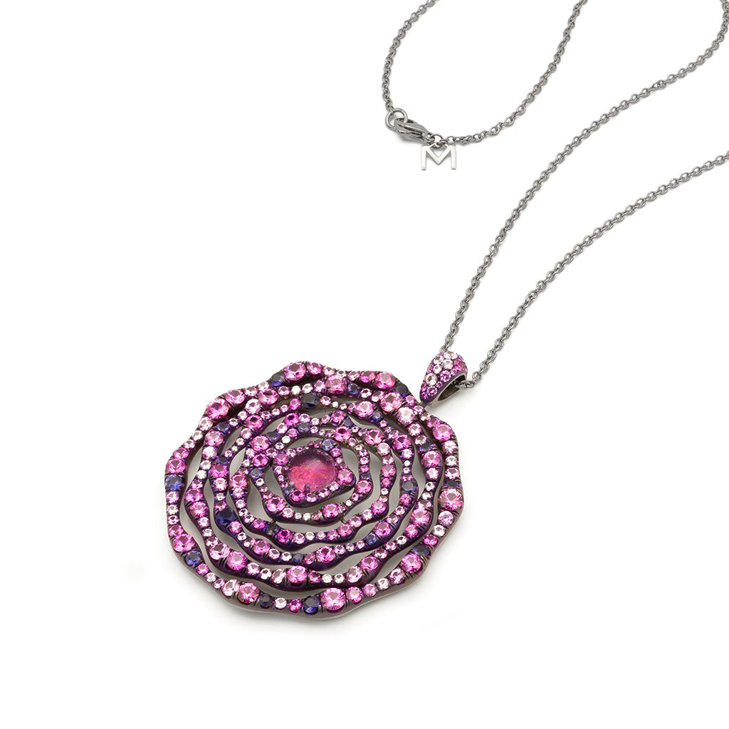 Pendant Aqua in titanium, white diamonds, pink sapphires, iolite and rubellite