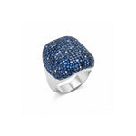 A refined expression of the playful and versatile spirit of Mattioli jewelry, the Puzzle rings in 18k gold with pave of precious stones represent the new interpretation of the brand's iconic shapes. Sophisticated plays of light embellish and enhance a design inspired by abstract art and Calder's sculptures. Each ring is entirely handmade in Italy and is available in versions with pave of white diamonds, pink sapphires, or blue sapphires. Three models that celebrate elegance, color, and creativity through the impeccable craftsmanship of Mattioli's goldsmiths in creating colorful pave.