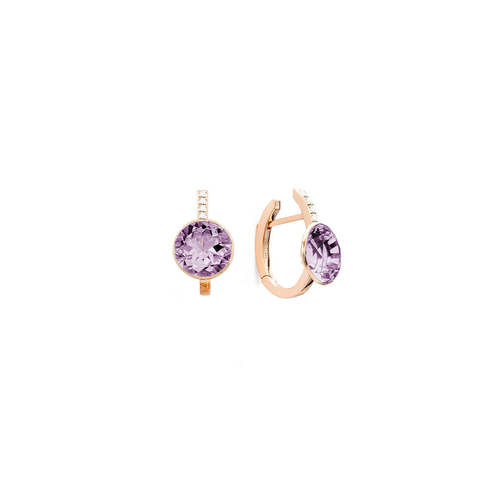 Colors, transparencies, and lights define Mattioli's Smarties collection. Like sunbeams through stained glass compositions, light shines within the soul of each carved stone. The earrings from the Smarties collection are crafted in 18k gold adorned with colorful gemstones. Shades of amethysts, sky topazes, and prasiolites blend with rose gold in a harmonious mosaic of elegance that adds charm and joy to the wearer. The brilliant cut, the most precious, reveals sharp forms and enhances the facets and transparencies of the gemstones, creating unique jewelry pieces. Express your joy and style with Mattioli's Smarties jewelry, entirely handmade in Italy.